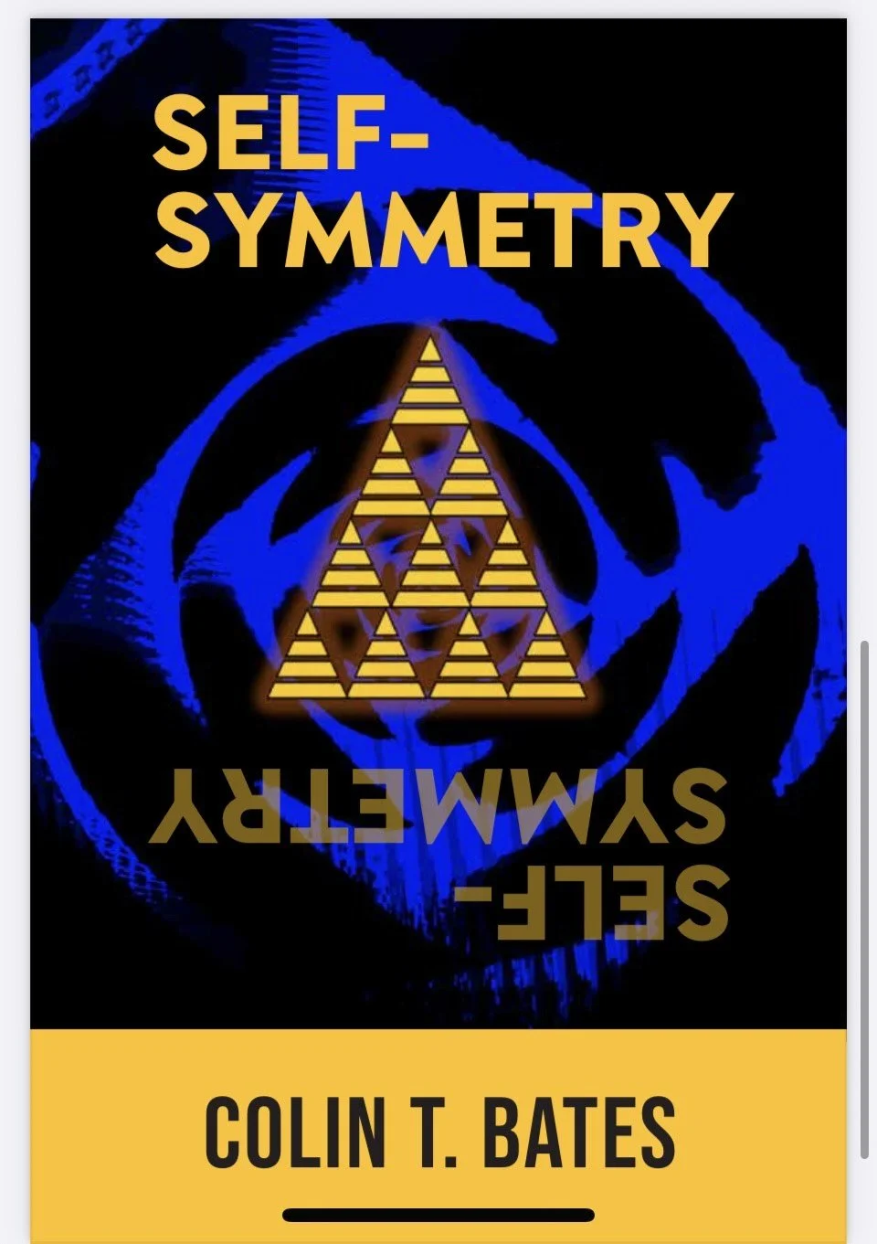 I eventually wanted to try to make a spiral pattern that resembled snake skin, like the line in the story when Ryan first wakes up to his techno-hellscape. Then I added the nested triangles and was very happy with the final look! There were two more candidates that made it to the final three: a fractal triangle image (created by this Sierpinski Fractal Generator) and a different blue image spiral made from High-eye. Huge shout-out to Amy Parker from AP Design for her wonderful work on each of the final three covers. I hope you enjoyed this little method section into what went into creating the cover art for Self-Symmetry!