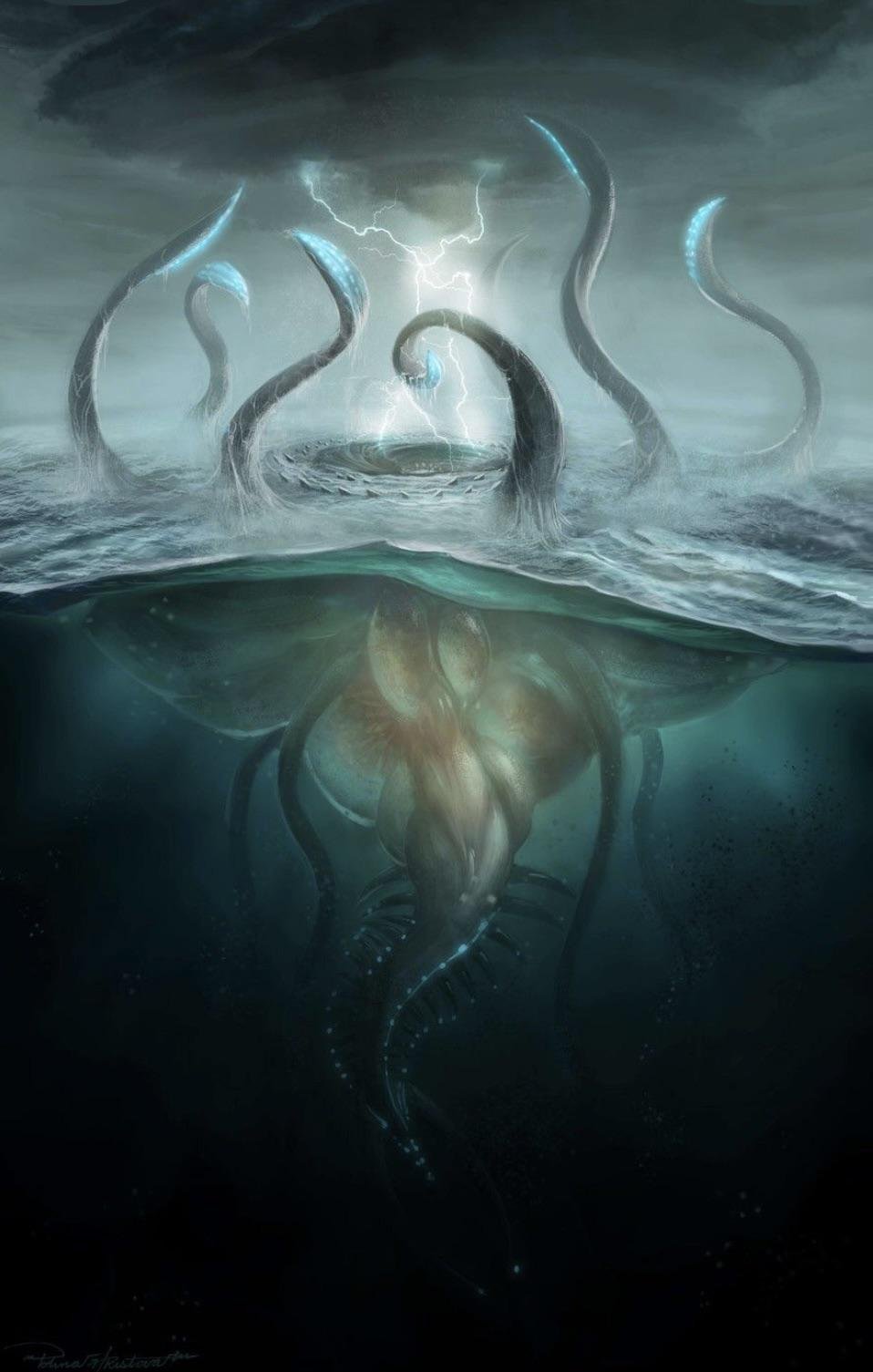 A dizzying sensation of anxiousness filled Paxon's gut. A brilliant, cloudless sky surrounded him. He looked out at the ineffable limbs of the vast, colossal entity, which squirmed ahead of the boat. Each incandescent, shimmering extremity could be roughly described as a tentacle. However, its exact nature or classification was still a topic of much scientific debate, according to the park guide film they had just watched.